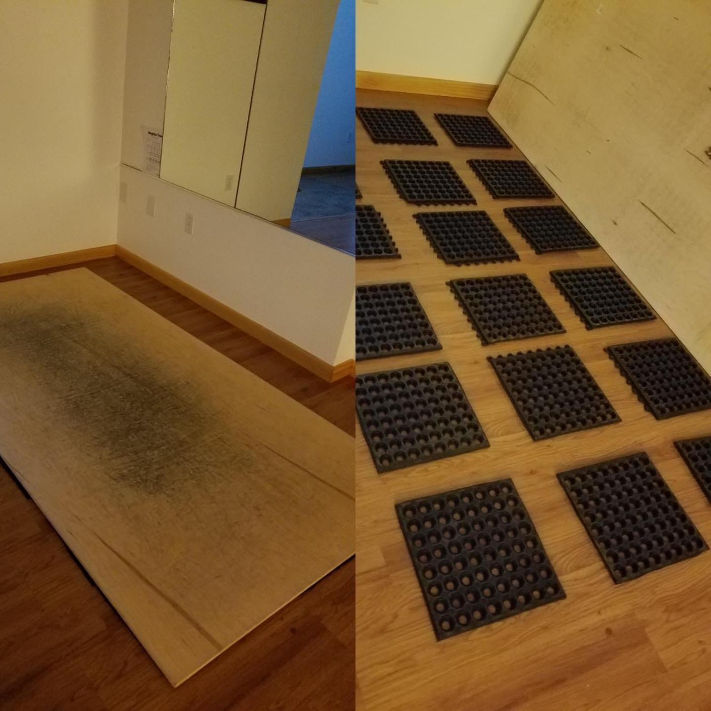 I'm definitely going to recommend having some sort of cushioning under the wood. This serves 2 purposes - a barrier between the wood and your floor (we don't want to do all this work just to have your tap board damage your flooring!) and more importantly, it provides support for your joints.